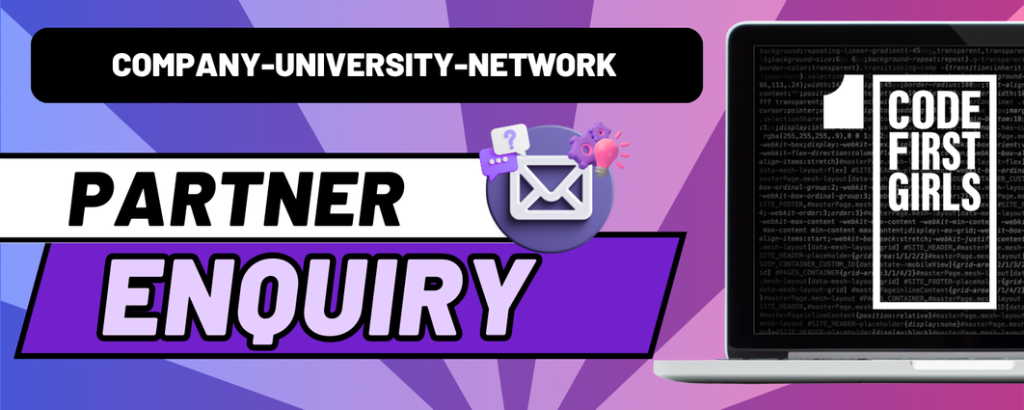 If you are a company looking to hire tech talent or provide employee training, or a university or regional network looking to boost your employability stats and want to find out more about Code First Girls or Code First Teams, please fill in the form by clicking the button below and we’ll get back to you as soon as possible.