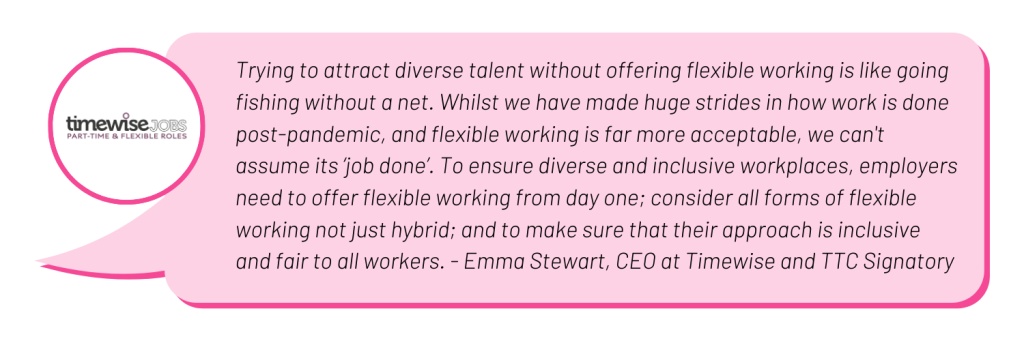 Studies have shown that including flexibility in your job ads can lead to a 30% increase in the volume of applicants. Notably, it also drives up the number of female applicants as ”women are twice as likely to work flexibly compared to men – with women with children being the most likely to make use of flexible work arrangements.”